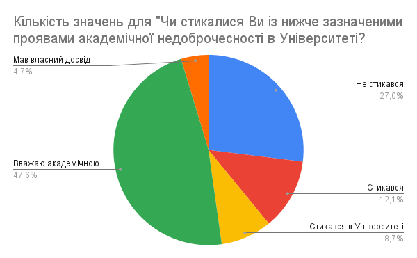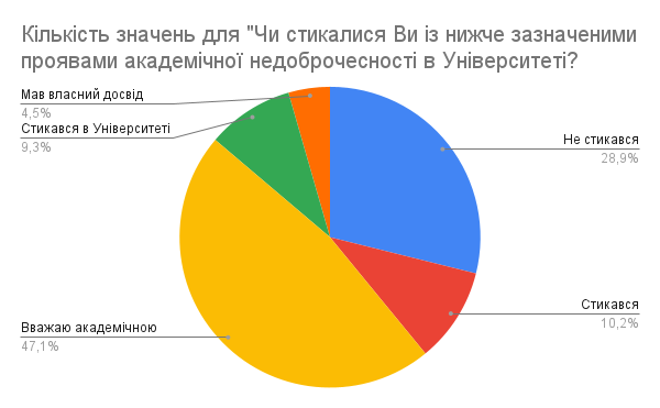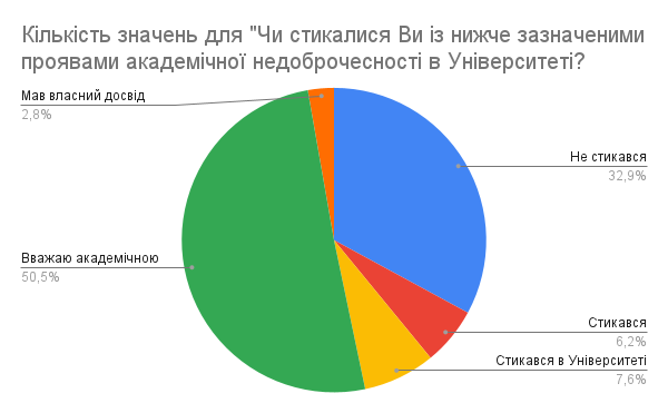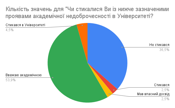 Формування культури академічної доброчесності неможливе без зворотного зв’язку. Тому Центр забезпечення якості вищої освіти регулярно запитує думку студентів про дотримання академічних стандартів.