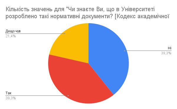 30. Чи знаєте Ви, що в Університеті розроблено такі нормативні документи? [Кодекс академічної доброчесності]