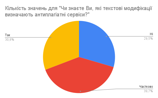 40. Чи знаєте Ви, які текстові модифікації визначають антиплагіатні сервіси?