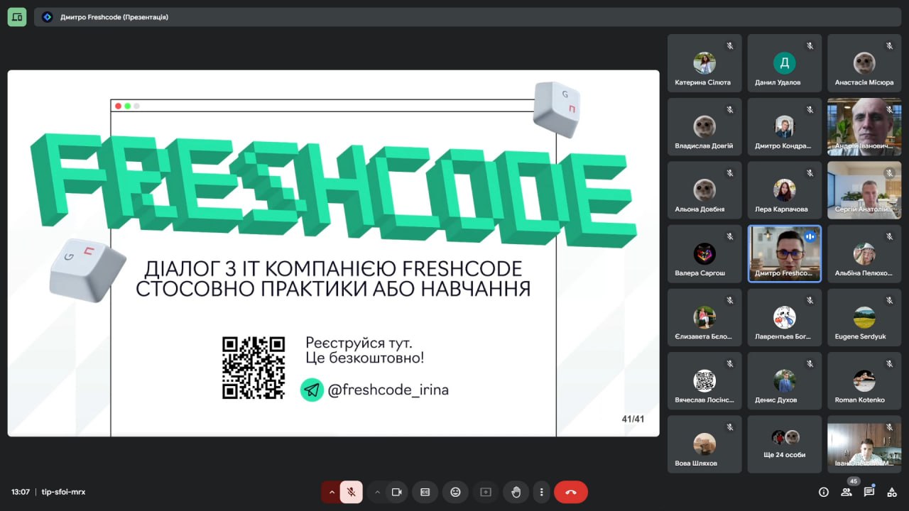 Днями відбулася продуктивна онлайн-зустріч представників ІТ-компанії Freshcode із викладачами та студентами факультету інформаційних технологій Криворізького національного університету. Основною темою діалогу став розвиток практичних навичок майбутніх фахівців та синергія академічної освіти з вимогами сучасного ІТ-ринку.