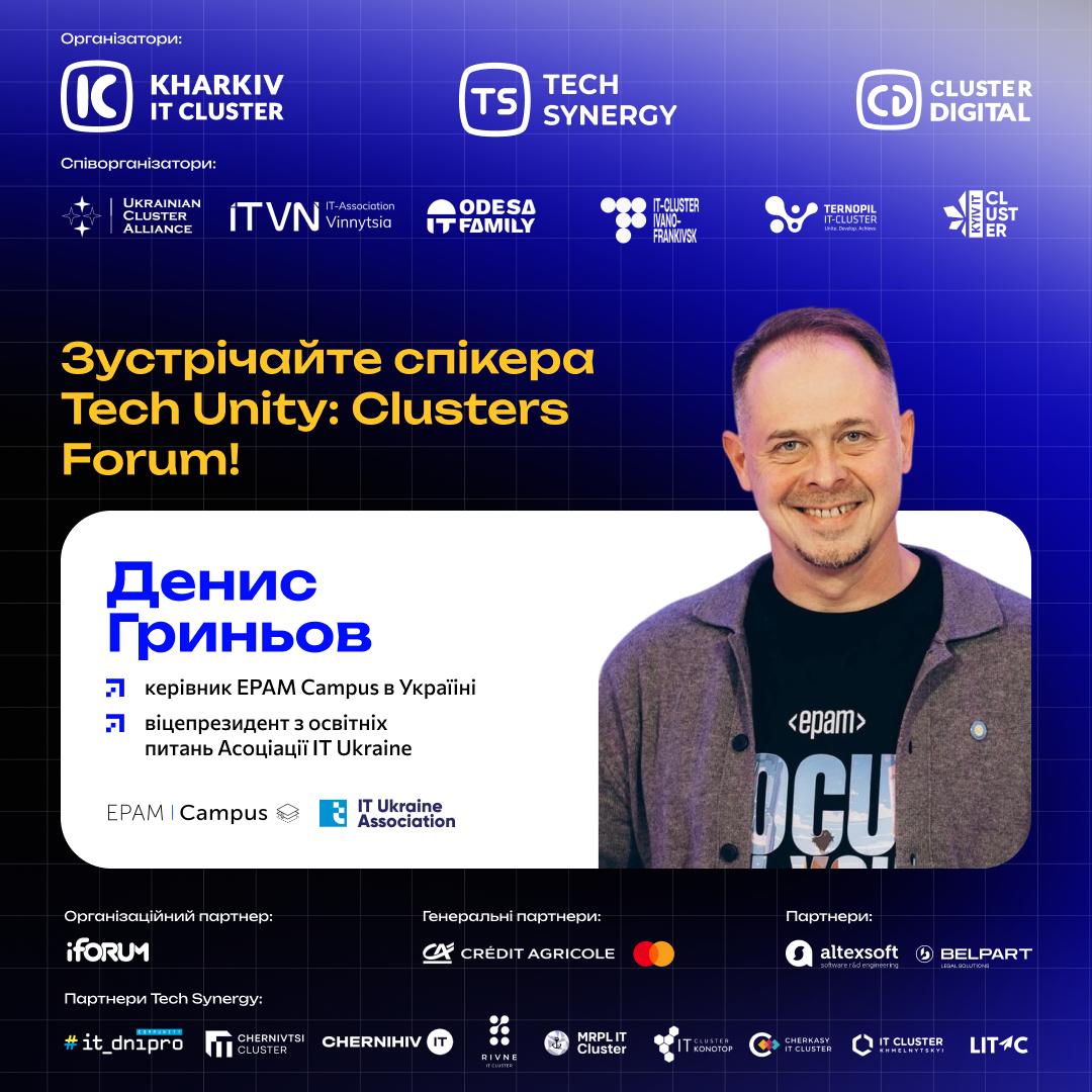 🔥Серед спікерів — Денис Гриньов, керівник EPAM Campus в Україні та віцепрезидент з освітніх питань IT Ukraine Association.