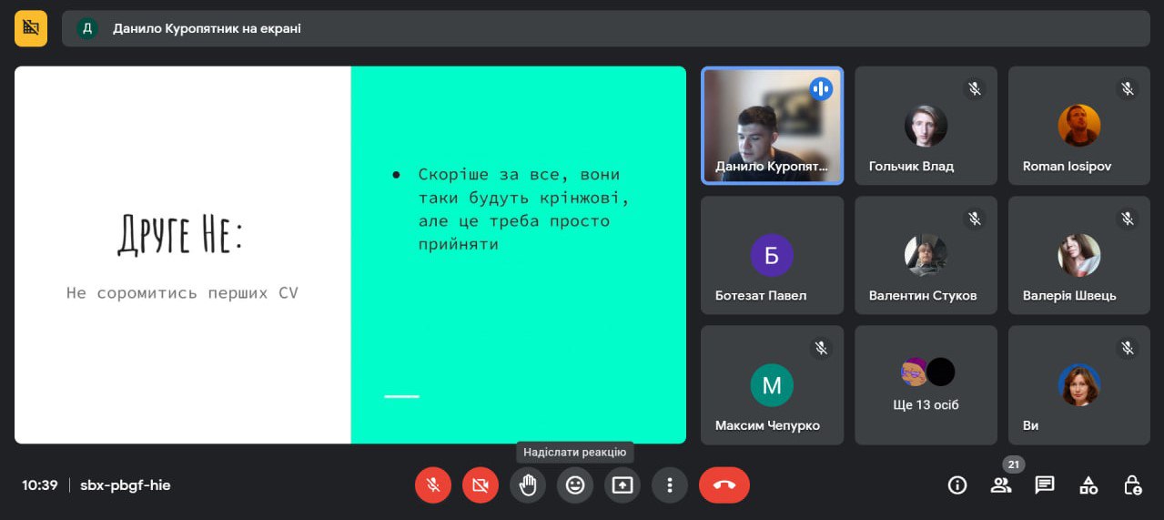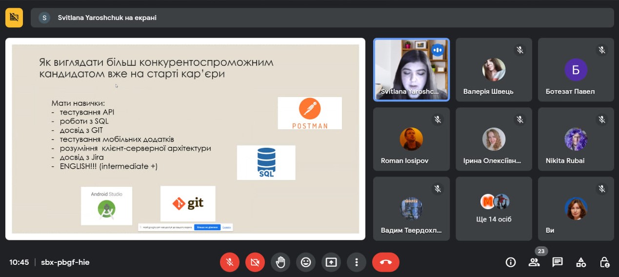 Студенти активно долучилися до дискусії, розпитуючи про критерії відбору на стажування, необхідний рівень англійської мови та найбільш затребувані технології в компанії сьогодні.